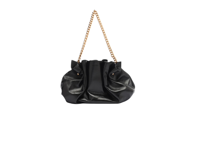 Conoce el pequeño embrague Gold Hardware con cadena. El cuero plisado le da a este bolso un atractivo relajado y moderno, mientras que la correa de la cadena dorada agrega sofisticación y un toque glamuroso. Una pieza llamativa que querrás usar una y otra vez.